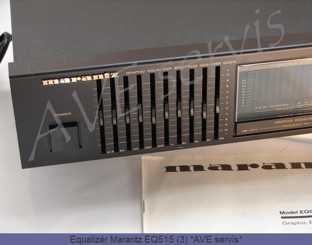 Grafický 10-ti pásmový stereofonní equalizér s VFD analyzérem. Přístroj slouží k velmi přesné korekci vašeho akustického řetězce a frekvenční úpravy poslechového prostoru od renomované firmy Marantz typ EQ515. Do AV systému se připojuje např. přes vstupy a výstupy Cinch konektorů pro Tape Deck (magnetofon) a příp. Tape Deck se poté připojí do tohoto equalizéru. Je vybaven generátorem růžového šumu pomocí kterého s připojením měřicího mikrofonu (není součástí) na grafickém analyzéru přesně nastavíte kmitočtový průběh a disponuje přepínači pro veškerá nastavení.